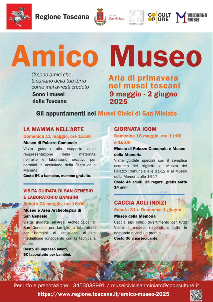 Per tutti gli eventi informazioni e prenotazioni telefonando a 3453038991 oppure via mail scrivendo a museicivicisanminiato@coopculture.it