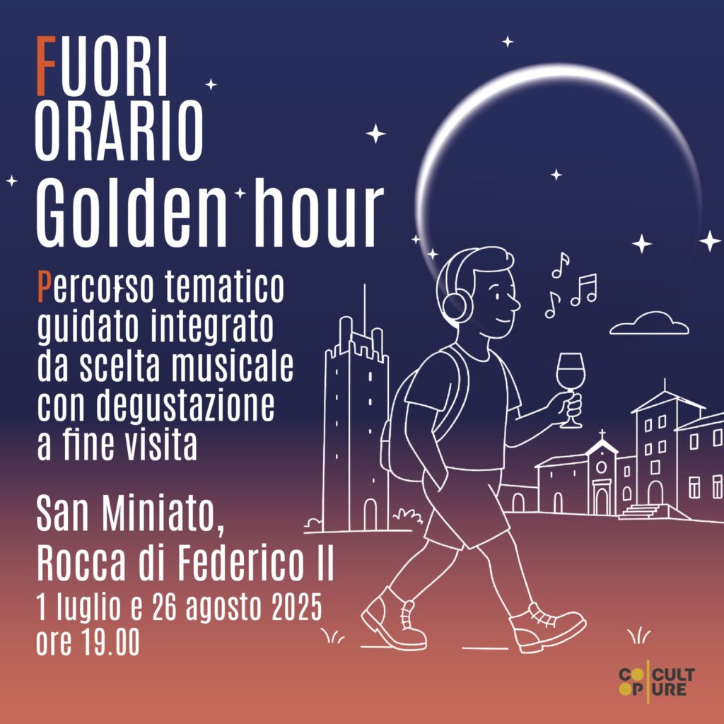 Il 17 luglio e l’11 settembre 2025 alle ore 19:00, vi aspettiamo a San Miniato per un evento speciale che unisce storia, musica e gusto. 🌇 Fuori Orario – Golden…