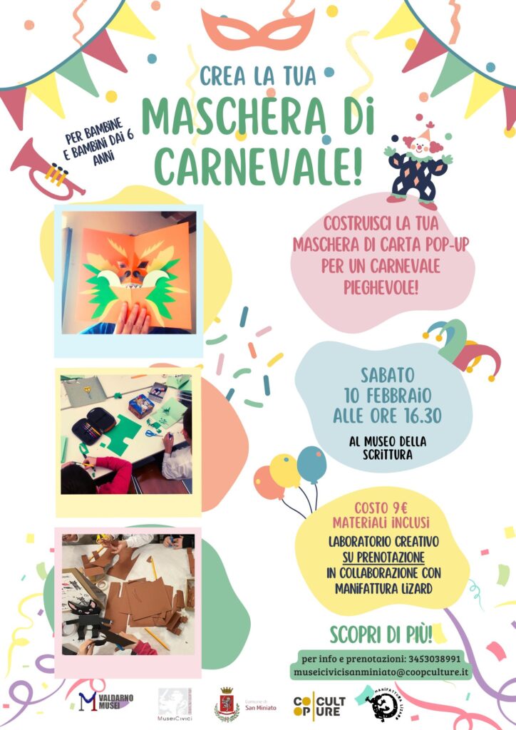 𝘾𝙧𝙚𝙖𝙧𝙚 𝙡𝙖 𝙥𝙧𝙤𝙥𝙧𝙞𝙖 𝙢𝙖𝙨𝙘𝙝𝙚𝙧𝙖 𝙙𝙞 𝘾𝙖𝙧𝙣𝙚𝙫𝙖𝙡𝙚 𝙣𝙤𝙣 è 𝙢𝙖𝙞 𝙨𝙩𝙖𝙩𝙤 𝙘𝙤𝙨ì 𝙙𝙞𝙫𝙚𝙧𝙩𝙚𝙣𝙩𝙚! In occasione del Carnevale, i Musei Civici di San Miniato, in collaborazione con Manifattura Lizard, organizzano un laboratorio…